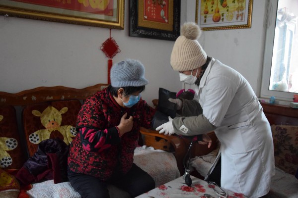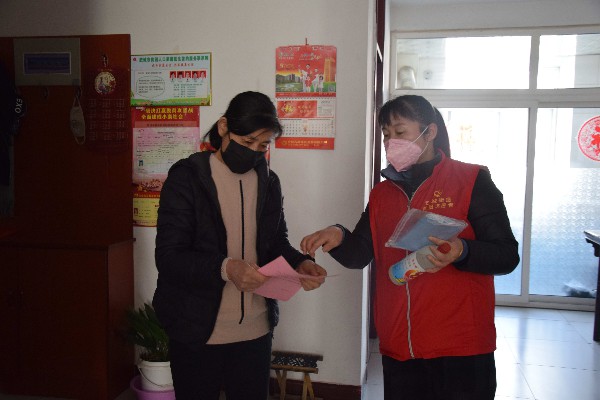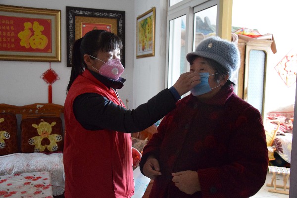 “知道您出行不方便,我来给您送点84消毒液、口罩和宣传册,现在疫情还很严重,尽量少出门,有事及时给我打电话。”志愿者刘平嘱咐道。她耐心地给老人讲解了口罩和消毒液的使用方法,又把老人家里的每一处角落都进行了消毒,并询问老人近期身体、生活状况,嘱咐她日常做好防护措施。卫生室医生张绪梅细心为老人测量体温、血压,讲解饮食上的注意事项,并对老人身体状况进行记录。