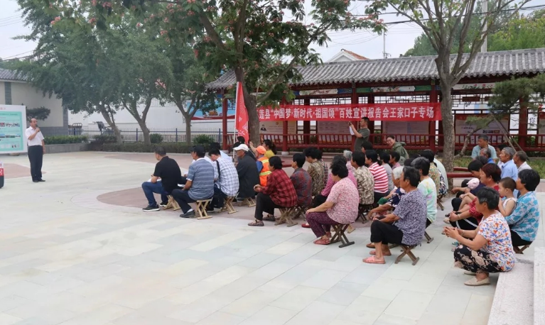 这是五莲县举办的“中国梦·新时代·祖国颂”百姓宣讲报告会王家口子专场。宣讲会上,8位分别来自五莲山旅游度假区、街头镇和松柏镇的基层宣讲员讲述了自己身边的动人故事,从护林员到人民公仆、从干细胞捐献者到村支书、从志愿者到林果专家,一个个动人而又朴实的精彩事迹深深感动着在场的村民。