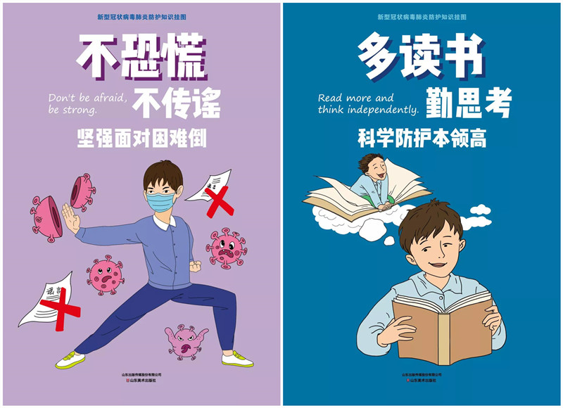 疫情就是命令,防控就是责任,行动就是担当!山东出版集团按照省委省政府决策部署,快速应对、主动作为,在紧急出版疫情防治出版物、扩大网上优质出版内容传播、开展公益捐赠等方面做了大量工作。中小学生春季开学在即,为加强中小学生的防护意识,助力打赢疫情防控决定性战役,在中共山东省委宣传部、山东省教育厅的大力支持下,山东出版传媒股份有限公司教育产业部和山东美术出版社联合策划出版了《新型冠状病毒肺炎防护知识挂图》,并通过山东新华书店集团向全省中小学校免费发放。